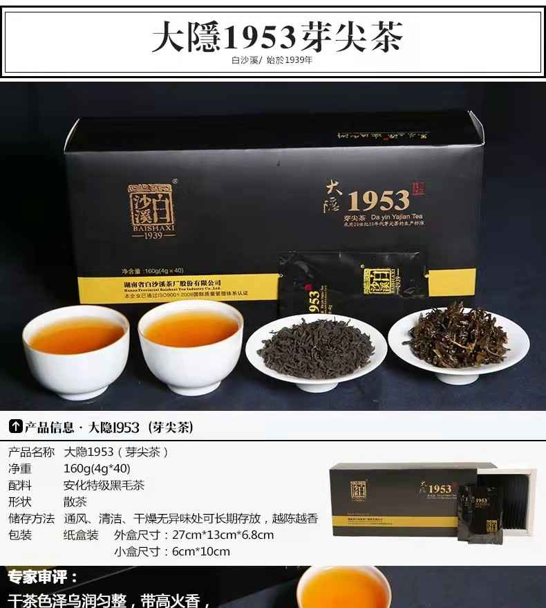 湖南安化黑茶正宗白沙溪正品散茶便攜大隱1953特級(jí)芽尖160g直泡黑茶