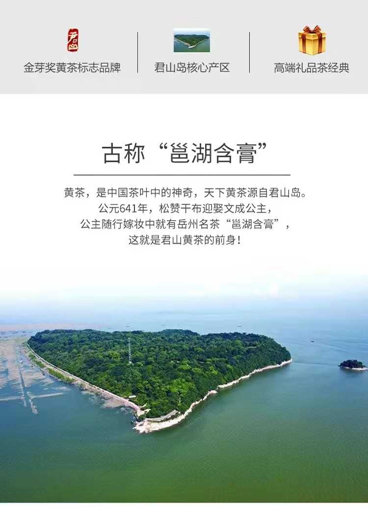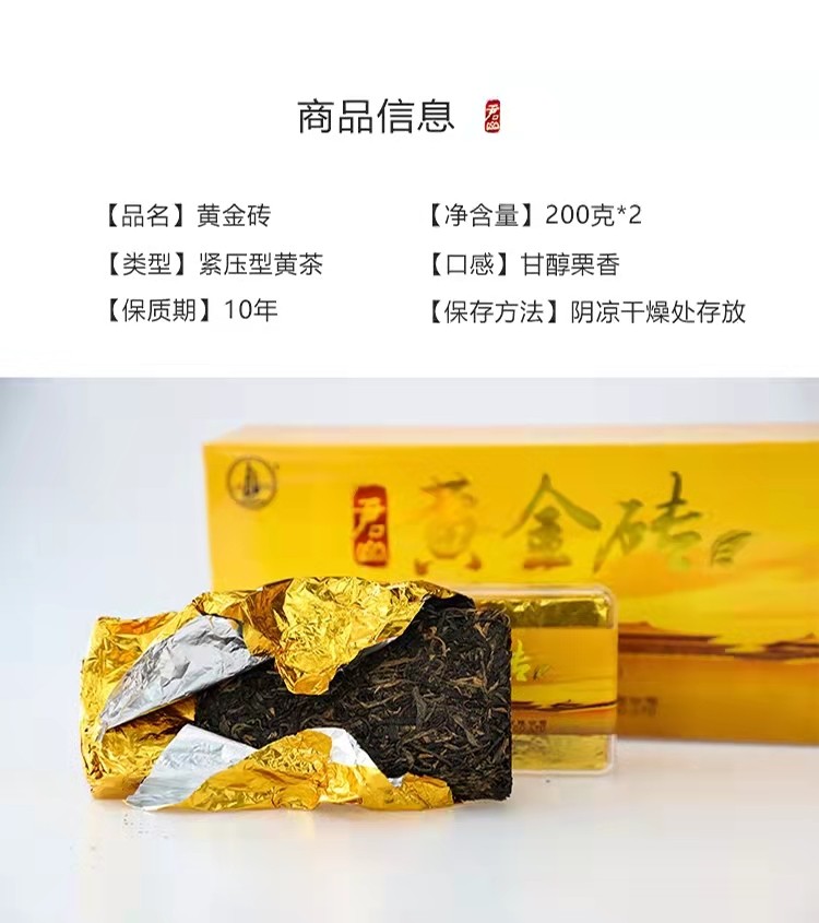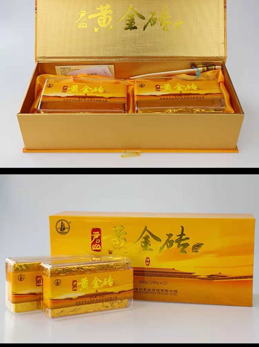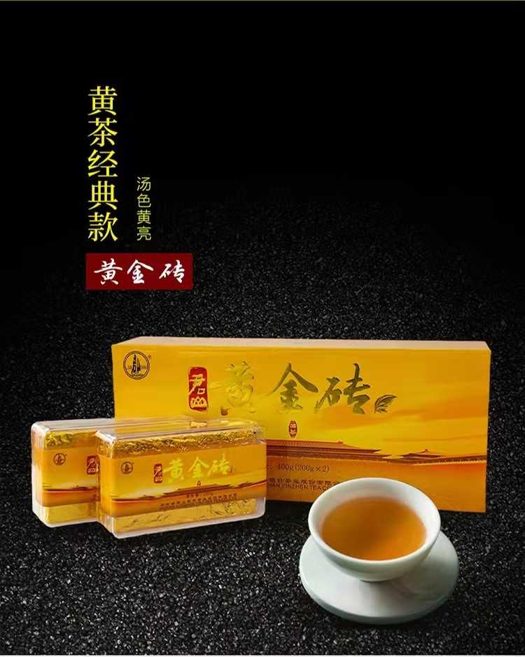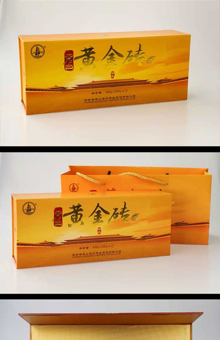 湖南特產(chǎn)茶葉岳陽黃茶君山牌緊壓型黃金磚禮,盒400g