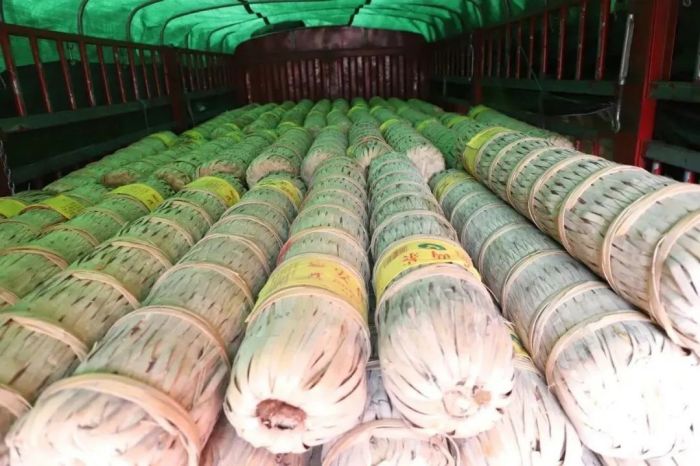 前兩批出倉的千兩茶大部分為往年定購產(chǎn)品,一直集中存放于白沙溪的標(biāo)準(zhǔn)茶倉;而近日運(yùn)往北京的這批千兩茶則是客戶去年和今年分兩批定購的千兩茶,像這樣5000支千兩茶一次出倉實(shí)為罕見,景象非常壯觀。