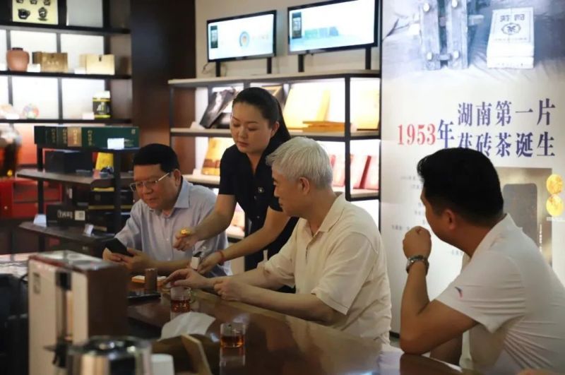 最后,考察組來到白沙溪黑茶體驗中心品飲白沙溪黑茶,并就黑茶如何做到認可度更大、競爭力更強、品牌更響,從品質(zhì)提升等方面與劉新安進行了深入的交流與探討。劉新安從五方面闡述安化黑茶未來市場潛力巨大:安化黑茶是中國六大茶類中唯一被政府管控的茶類,具有獨特的健康屬性,是“富貴病”的克星,是21世紀人類健康之飲。且黑茶價格實在、實惠、好喝。近年,安化黑茶高質(zhì)量發(fā)展,原料越來越好,品類越來越多,工藝水平大幅提升。安化黑茶從邊銷轉(zhuǎn)入內(nèi)銷、外銷、邊銷并舉時代,品牌是靠品質(zhì)決定的。張綱對此十分贊賞。