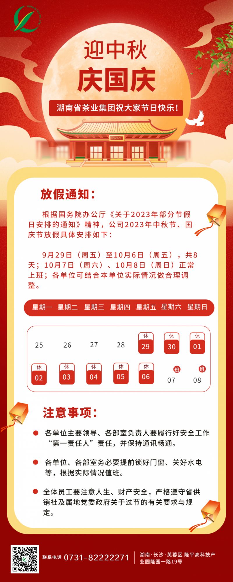 迎中秋、慶國慶,湖南省茶業(yè)集團(tuán)祝大家雙節(jié)快樂!