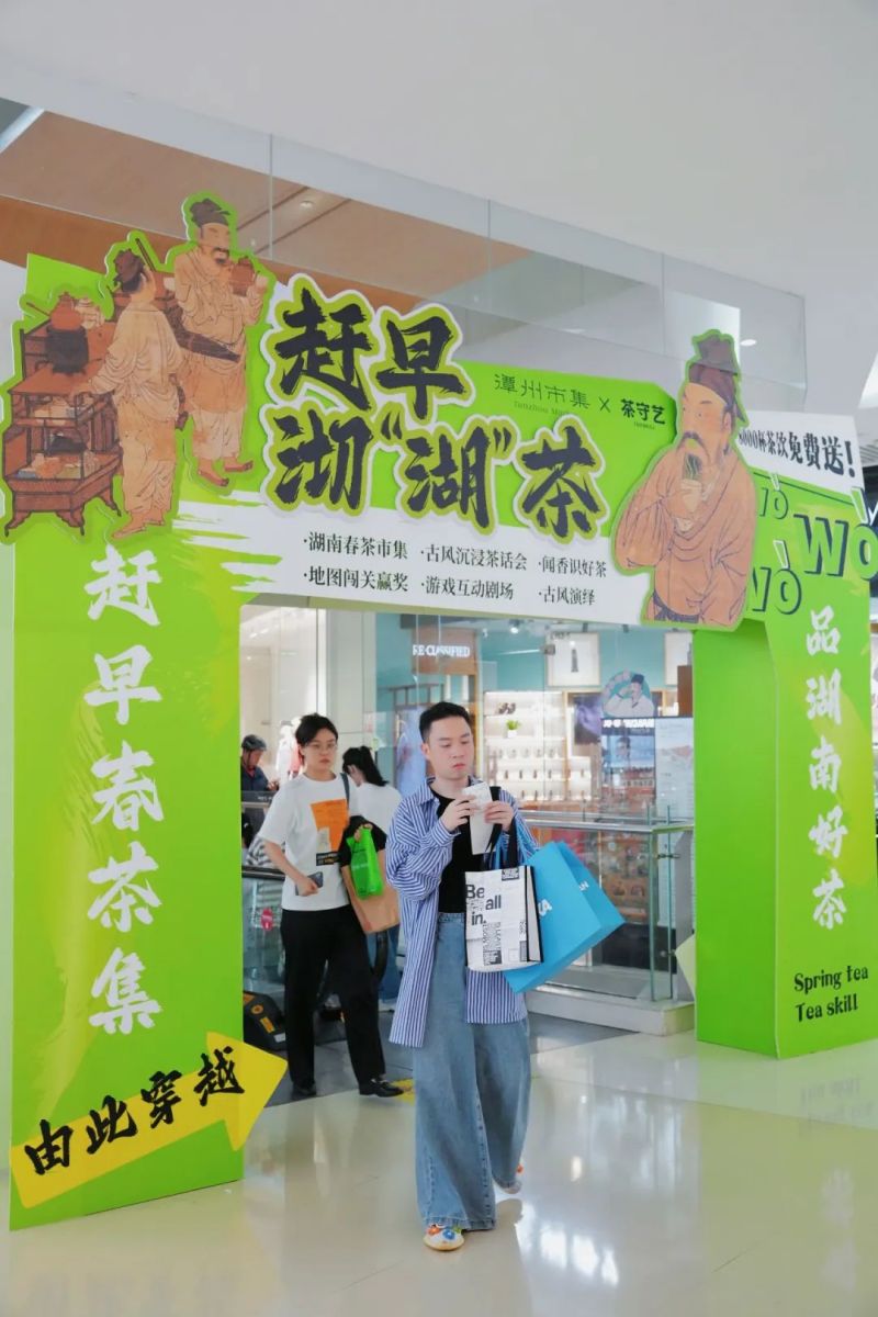 在春茶上新之際,茶守藝特別策劃了湖南首個(gè)古風(fēng)茶市主題“趕早,沏湖茶”,運(yùn)用以古作新的手段方式,聯(lián)合中心印象城潭州市集,進(jìn)一步促活中青年群體茶飲市場,賦予古老湖南茶嶄新的生命力。