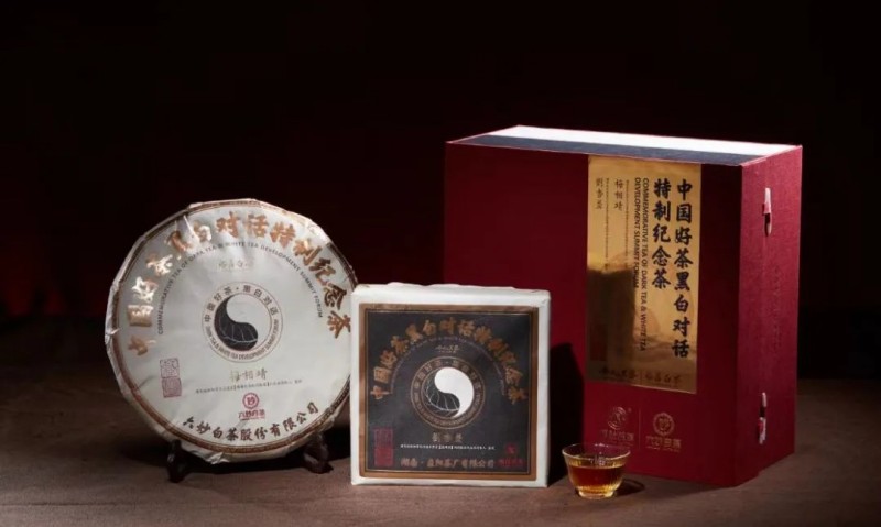 “中國好茶·黑白對話”特制紀念茶,是于2020年11月26日在中國廣州舉辦的首屆“中國好茶·黑白對話產(chǎn)業(yè)發(fā)展高峰論壇”授權(quán)發(fā)行的唯一一款殿堂級組合紀念茶禮,茶禮內(nèi)配裝湘益1公斤特級高山料茯茶方磚一塊和六妙1公斤貢眉料白茶一餅。均為國家級非遺技藝代表性傳承人劉杏益(黑茶)、梅相靖(白茶)匠心之作,亦堪稱安化黑茶、福鼎白茶兩大地理品牌的標桿之作。
