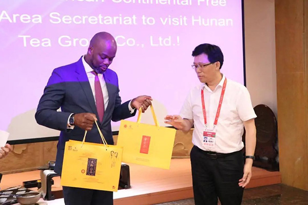 瓦姆凱萊·凱貝斯韋·梅內(nèi)代表非洲大陸自貿(mào)區(qū)秘書處感謝省茶業(yè)集團精心組織的參觀,特別安排的茶藝表演和茶葉品鑒,對該集團在各個領域取得的成就及在貿(mào)易領域取得的經(jīng)濟效益致以祝賀。他表示,非洲政府對茶產(chǎn)業(yè)的關注和重視不斷提高,越來越多的隊伍投身到茶產(chǎn)業(yè)振興當中,非洲大陸人口眾多,到2025年預計達到全球人口的四分之一,市場潛力巨大,中國和非洲大陸的經(jīng)濟往來將會更加頻繁,中國的茶葉出口公司和非洲的茶葉種植出口公司也會因為非洲人口的增長得到巨大發(fā)展。他希望,在非洲自由貿(mào)易區(qū)的帶領下,能夠深化湘茶集團與非洲茶葉貿(mào)易企業(yè)的交流與合作,湘茶集團的產(chǎn)品能夠在非洲暢銷,中非之間的貿(mào)易能夠更上一層樓。