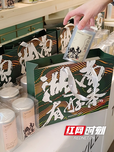 “我們提前就做好攻略,長沙的景點(diǎn)都要打卡,這會(huì)兒逛完太平街,來到茶守藝涂鴉墻這邊拍完照,就來喝杯茉莉奶綠,門口推出的茉莉花茶冰淇淋也很好吃。”從鄭州來的張同學(xué)和朋友們喝完飲品后,還仔細(xì)看了下伴手茶禮。據(jù)介紹,“五一”期間,該店日均人流達(dá)400人次,選購“湖南有好茶”系列伴手禮的比率達(dá)50%。