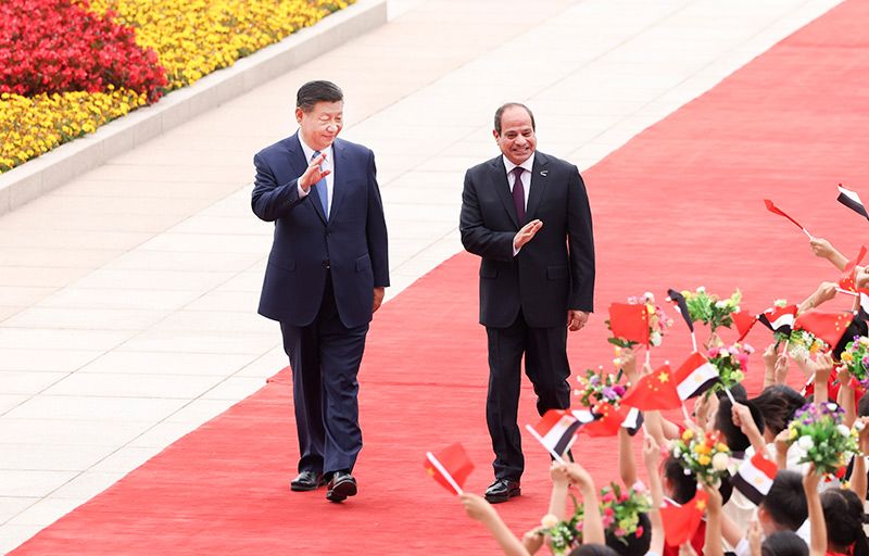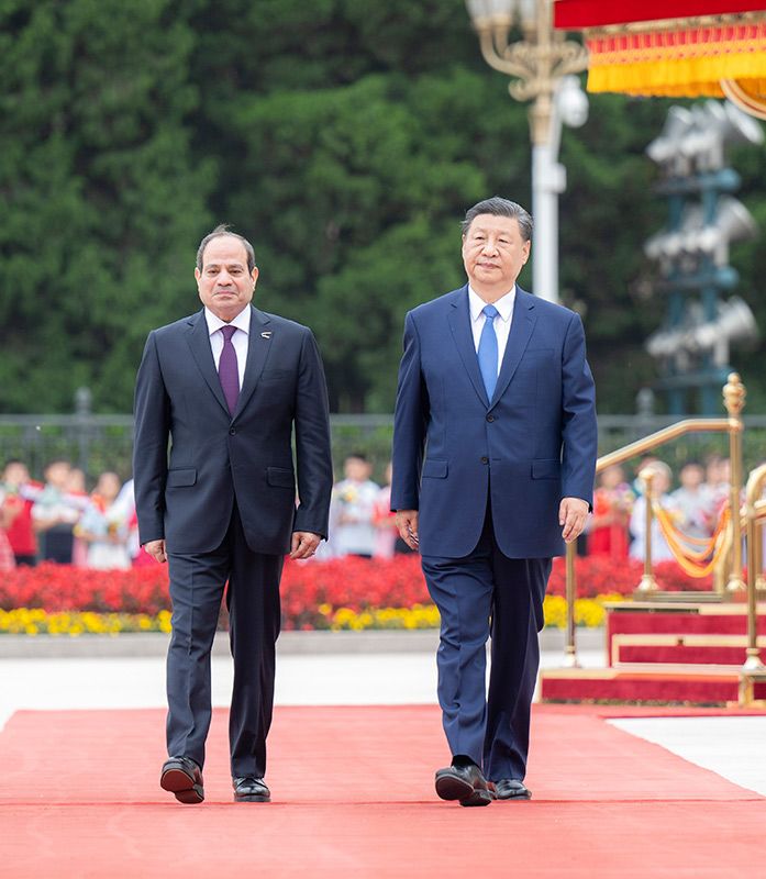 塞西表示,很高興來華進行國事訪問并出席中阿合作論壇第十屆部長級會議開幕式。當(dāng)前世界正處于深刻復(fù)雜變化之中,中東地區(qū)深陷危機。埃方期待同中方進一步深化全面戰(zhàn)略伙伴關(guān)系,努力促進地區(qū)和平穩(wěn)定。埃方恪守一個中國原則,堅定支持中方在涉臺、涉港、涉藏、人權(quán)等核心利益問題上的立場,堅定支持中國實現(xiàn)國家完全統(tǒng)一。埃方歡迎更多中國企業(yè)赴埃投資合作,助力埃及制造業(yè)發(fā)展和工業(yè)化進程。希望以今年“埃中伙伴年”為契機,密切人文交流,加強兩國在信息通訊、人工智能、新能源、糧食安全、金融等方面合作。埃方贊賞習(xí)近平主席提出的系列全球倡議,愿同中方密切多邊協(xié)作,為人類和平進步作出積極貢獻。