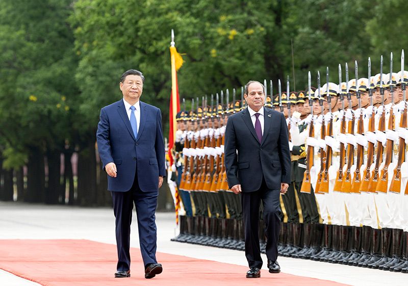 5月29日下午,國家主席習(xí)近平在北京人民大會堂同來華出席中國-阿拉伯國家合作論壇第十屆部長級會議開幕式并進行國事訪問的埃及總統(tǒng)塞西舉行會談。這是會談前,習(xí)近平在人民大會堂東門外廣場為塞西舉行歡迎儀式。新華社記者 翟健嵐 攝