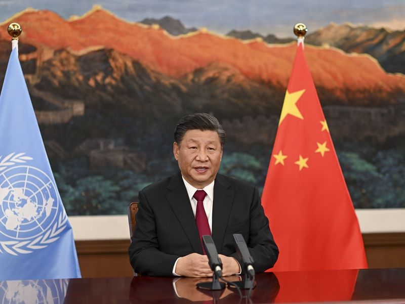 2021年10月12日,習(xí)近平主席以視頻方式出席《生物多樣性公約》第十五次締約方大會領(lǐng)導(dǎo)人峰會并發(fā)表主旨講話。新華社記者 李學(xué)仁 攝