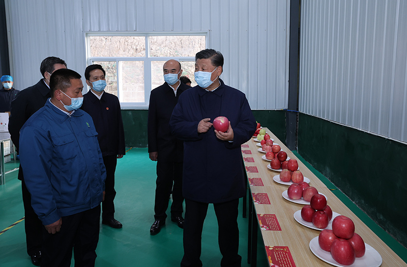 10月26日至28日,中共中央總書(shū)記、國(guó)家主席、中央軍委主席習(xí)近平在陜西省延安市、河南省安陽(yáng)市考察。這是26日下午,習(xí)近平在延安市安塞區(qū)高橋鎮(zhèn)南溝村蘋(píng)果洗選車(chē)間,察看當(dāng)?shù)胤N植的蘋(píng)果。新華社記者 鞠鵬 攝